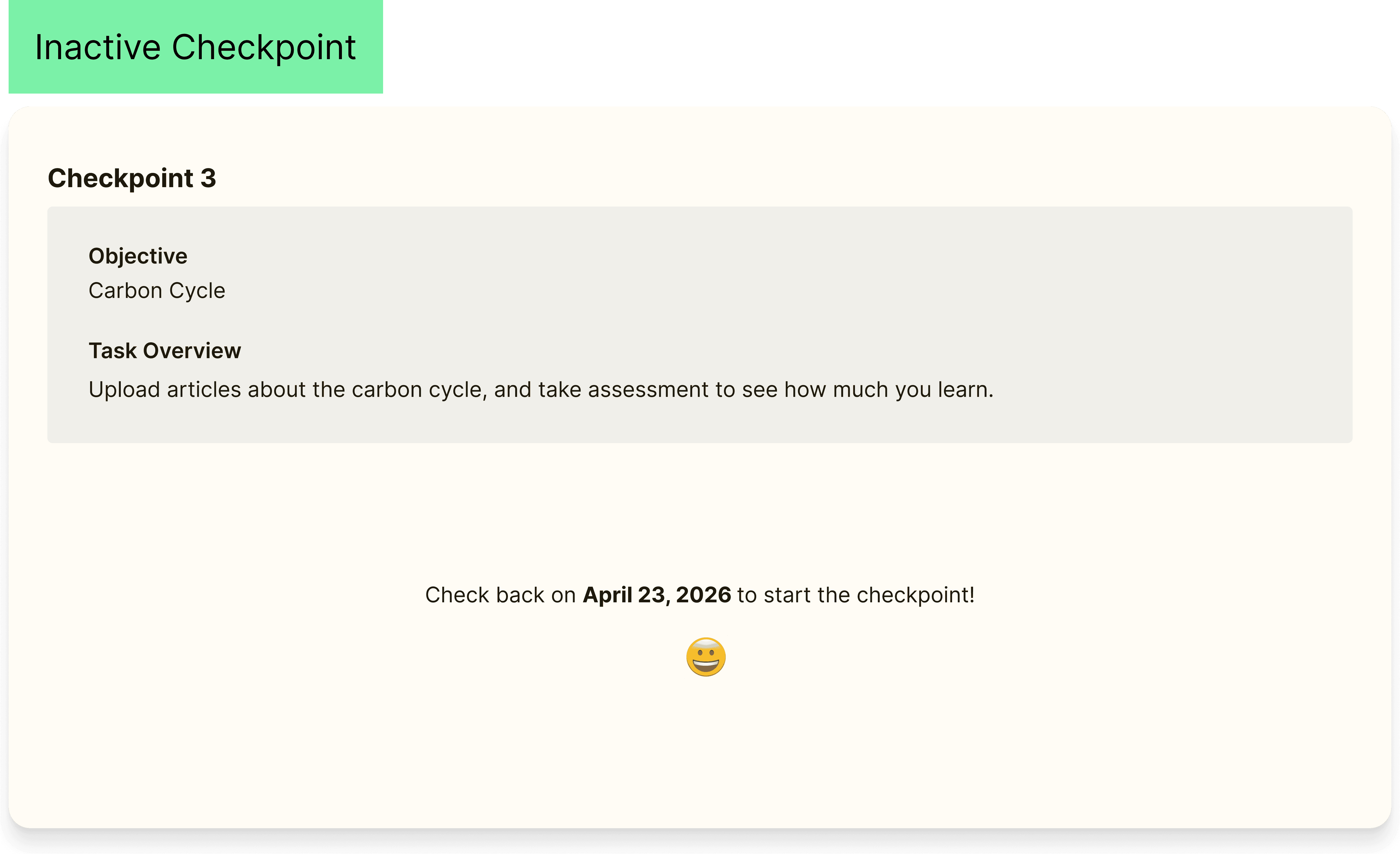 Student milestone view with 4 checkpoint states