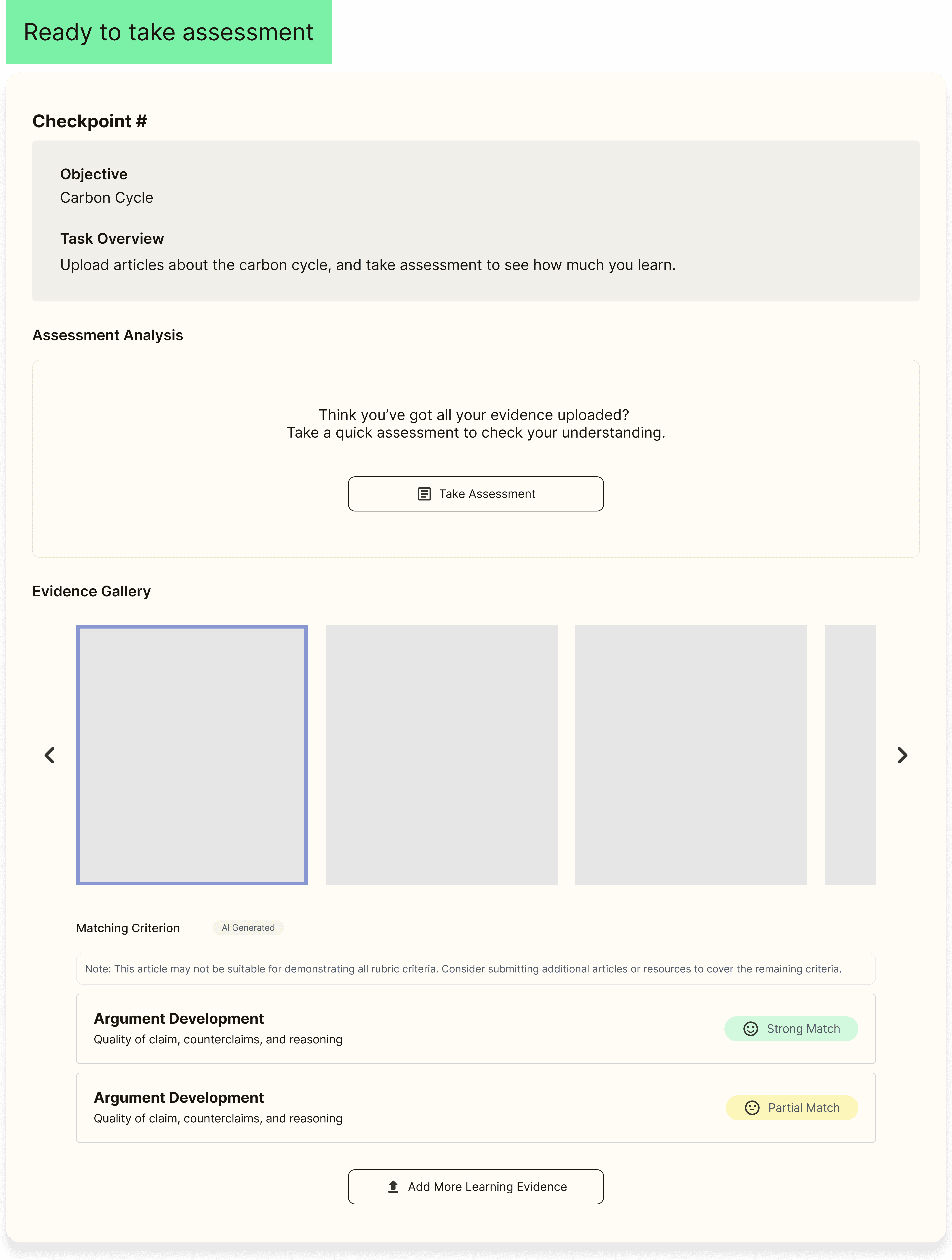 Al analyzing student evidence against tre rubric