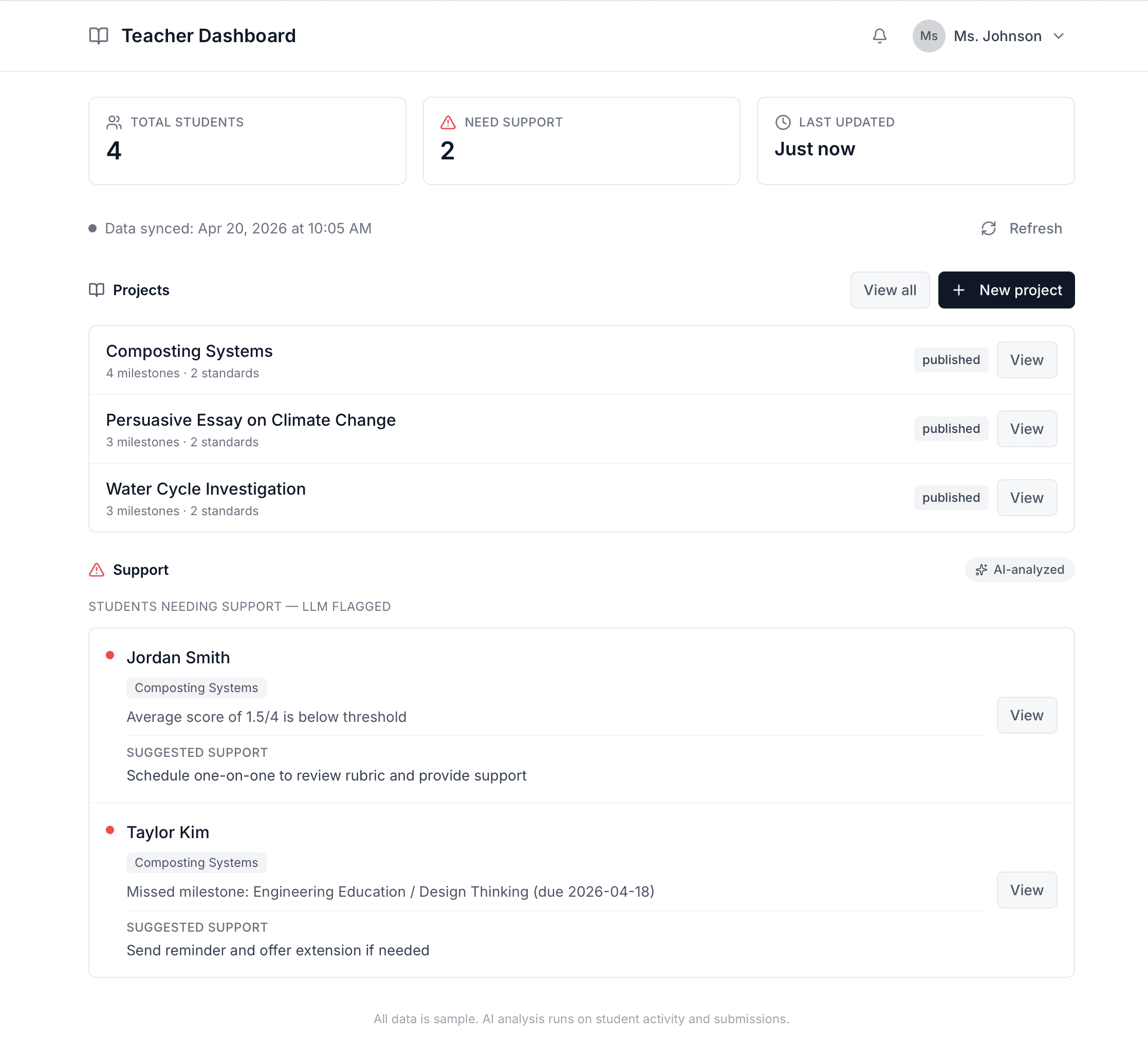 In PBL, every student tackles challenges differently, generating a flood of data no teacher can realistically track alone. Without a way to synthesize it quickly, giving each student tailored feedback becomes impossible.